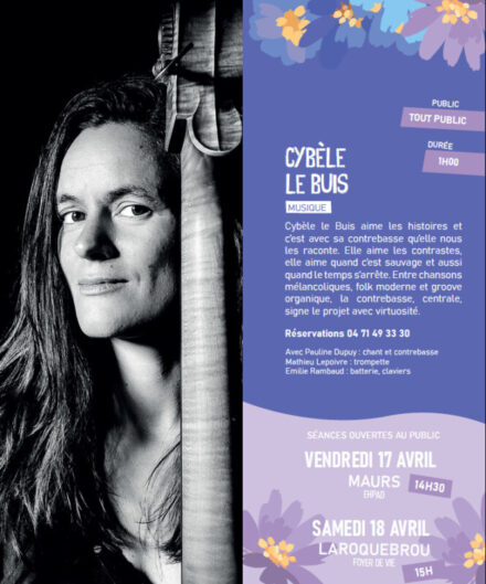 La commune a le plaisir de vous inviter à découvrir « Cybèle Le Buïs », un univers musical sensible et envoûtant, mêlant chansons mélancoliques, folk moderne et groove organique.